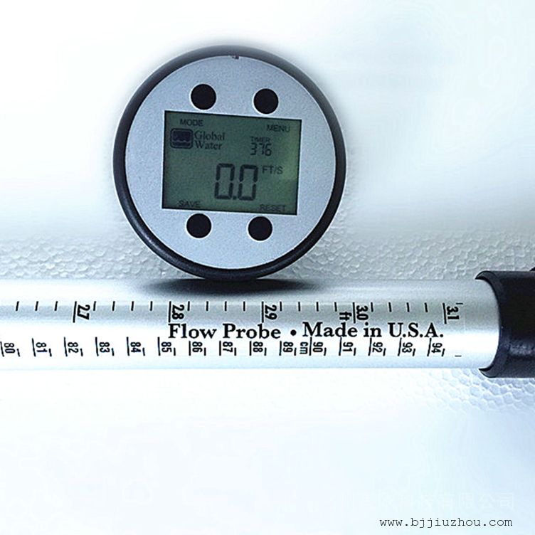 流量探頭手柄可以伸縮,長度范圍FP111:1.1-1.8m;FP211:1.7-4.6m;FP311:0.76-1.7m。手柄由陽極氧化鋁構成,重量輕,壽命長。4.6m長的FP211流速探頭,可以從路面測量下水道流速,從低的橋上測量溪流流速。收縮長度0.76m的FP311流速探頭,便于帶到偏遠的流速監(jiān)測區(qū)域。一個0.9米(FP311為0.5m)帶聚酯覆層的手柄測量尺(0.01英尺和厘米刻度)附在水流速探頭手柄的下部,用于即時的水深度測量和準確的渦輪定位。
